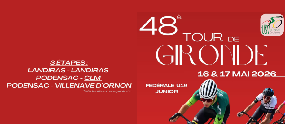 After a two-year hiatus, the TOUR de GIRONDE, dedicated to the future with the U19 "JUNIOR" category, will be run in 3 stages on Saturday 16 and Sunday 17 May 2026.